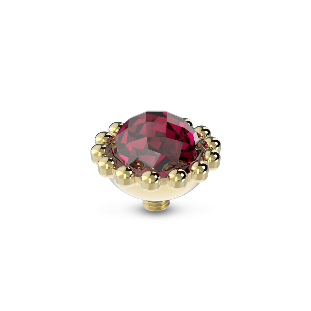 The Melano Bali Facet  Twisted Collection Ring Tops are a dainty stone that turns any piece of jewellery into a statement piece! The zirconia stone is framed by a bezel of stainless steel balls for a festive touch. The Bali Faceted stone has a diameter of 8mm and is  available in stainless, rose gold, or gold plating.