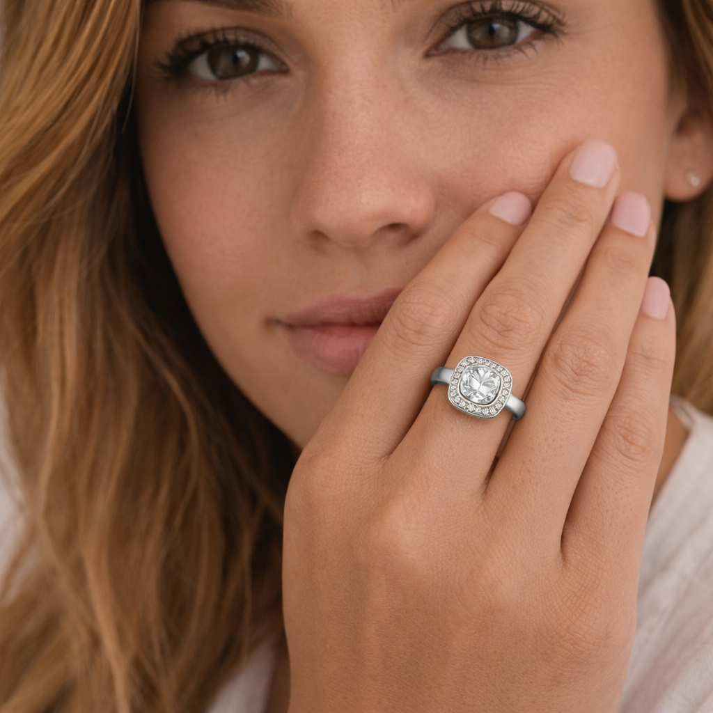 - When handling your ring, grip the band’s sides to avoid pressure on the stone.