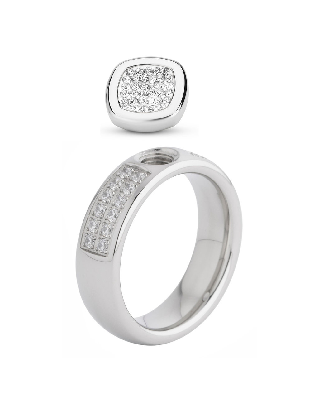 Setting tops feature Cubic Zirconia (CZ) crystals and gemstones.